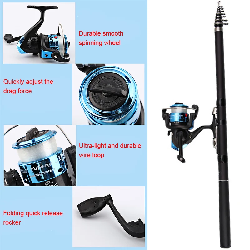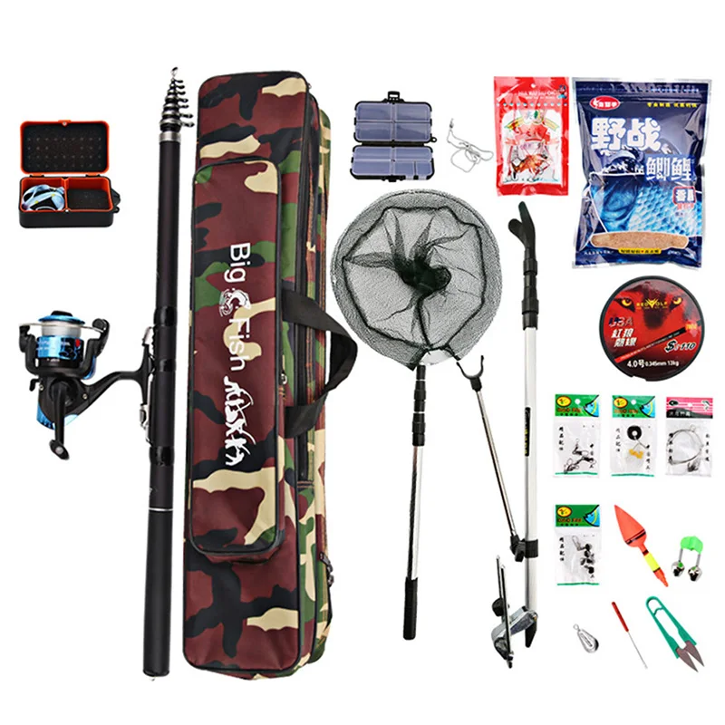 SALE Newly Telescopic Fishing Rod Pole Kit Reel Net Line Bait Tackle Bag Portable for Sea Lake BFE88