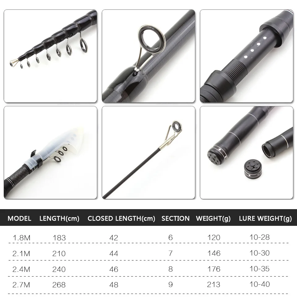 New Product 1.8m2.1m2.4m2.7m Telescopic Fishing Rod Reel Combo Full Kit Gear Spinning Reel Line Lures Hooks wit